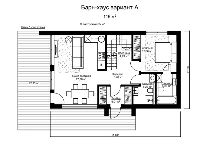 одна из них – мастер-спальня со своим санузлом, гардеробной и дверью, детская и рабочий кабинет